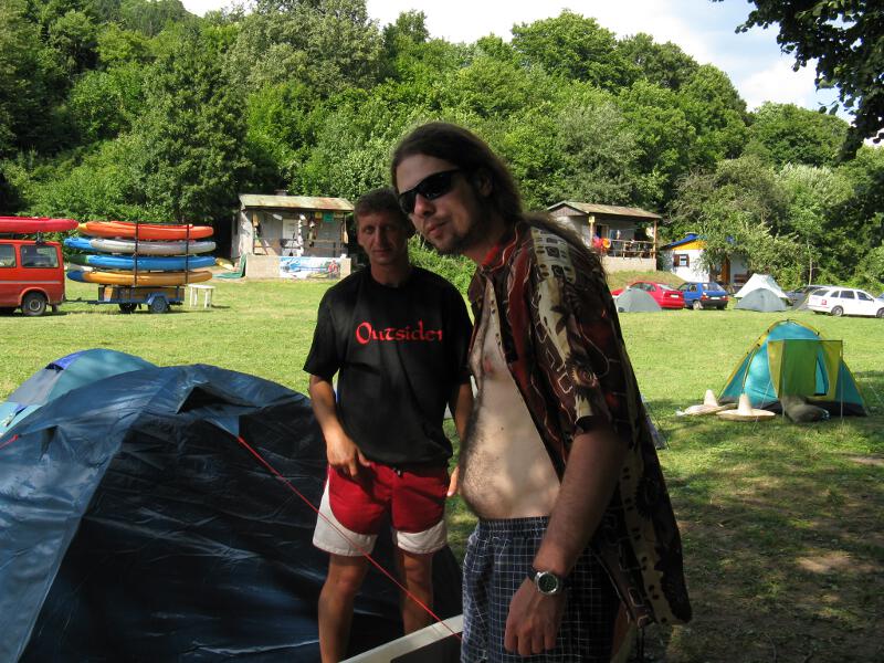 Cestou do kempu sme este zašli na 2 pivá do krčmi čo sme mali cestou, pripraviť pôdu na večer. Fero si tam dokonca aj ulavil. V kempe už čakali topánka s krtom. Rozložili sme si stany popili vinko a šli niečo popiť do krčmi. Topánka si ešte dokonca pospal v jednej krčme, kde čakal na tým A - Dodo, Pučo a Hrocho, tým A ale šiel do inej krčmi tak čakal márne. Kúpil si teda párky a pivá na cestu do kempu, ale cestou do kempu sa mu všetko zjebalo na zem, takže z toho nič nemal, havne ze mal nakúpené. Zaspal voľne pohodený medzi člnami. Večer ešte kemp pobudil Hrocho, ktorý sa vrátil z tej druhej krčmi a nevedel si nájť veci. Medzitým zobudil aj niekoho cudzieho koho si pomýlil s Ferom.
