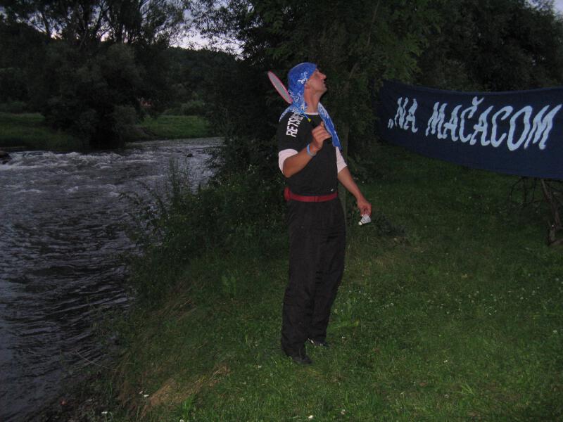 Ráno stále pršalo tak sme to prečkali v bufete na terase kde sme si dali pár pív. Pridali sa aj naši kamaráti z Teplic. Vyzeralo to dlho, že sa na vodu ani nedostaneme, ale potom sa náhle vyjasnilo a mohli sme vyraziť. Všetko šlo v pohode, aj Fero s Lacom šli bez chýb, až sme dorazili k hati. Hancko šiel prečítať vodu, ostatní sme zatiaľ čakali pred haťou. Ako 1. šli Fero s Lacom, ktorý hať prešli bez chýb. Hore zavládla pohoda pretože ako povedal Hancko, ked to prešiel fero prejdeme to všetci a pustili sa s elegánom Matesom dotoho. Z hora pod hať nebolo vidieť. Ako Hancko s Matesom prechádzali haťou, už sme len zhora videli vyletieť pádla do vzduchu, čo značilo, že sa vysypali do vody. Ostatné lode to ale zvládli bez ujmi. Mates s Hanckom stratili papričky a Hancko navyše si dal aj tetovanie na stehno. Vino ale pochytali všetko.