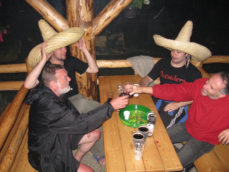 Na Brehy sme prišli okolo 20:00. Už nás tam čakali bratia z Teplic, ktorý už tiahli do krčmi aj s gitarami. My sme sa rozložili najedli a uvarili vifon, ktorý nakoniec nikto nejedol. Popili sme ešte tršku červeného a šli sme za nimi do krčmi. Hned pri bare sme začali strielať, pozvali sme aj Ladu. Ten na oplátku zobral dalšie kolo. Vzniklo tam tak riadne gulometné hniezdo. Neskôr sme sa presunuli na terasu kde sme rozložili dalšie gulomentné hniezdo. Krto ešte stihol rozjebať stoličku. Spievali sme dlho, až do nejakej 2:00. Potom v krčme vypli svetlo. Ešte takú pol hodinku sme pokračovali potme. To úž značná časť týmu spala. Zaniesli sme Ládu do stanu a tým A -Hancko, Hrocho, Topanka - vedený Hanckom smeroval na pivo do Hellsu.